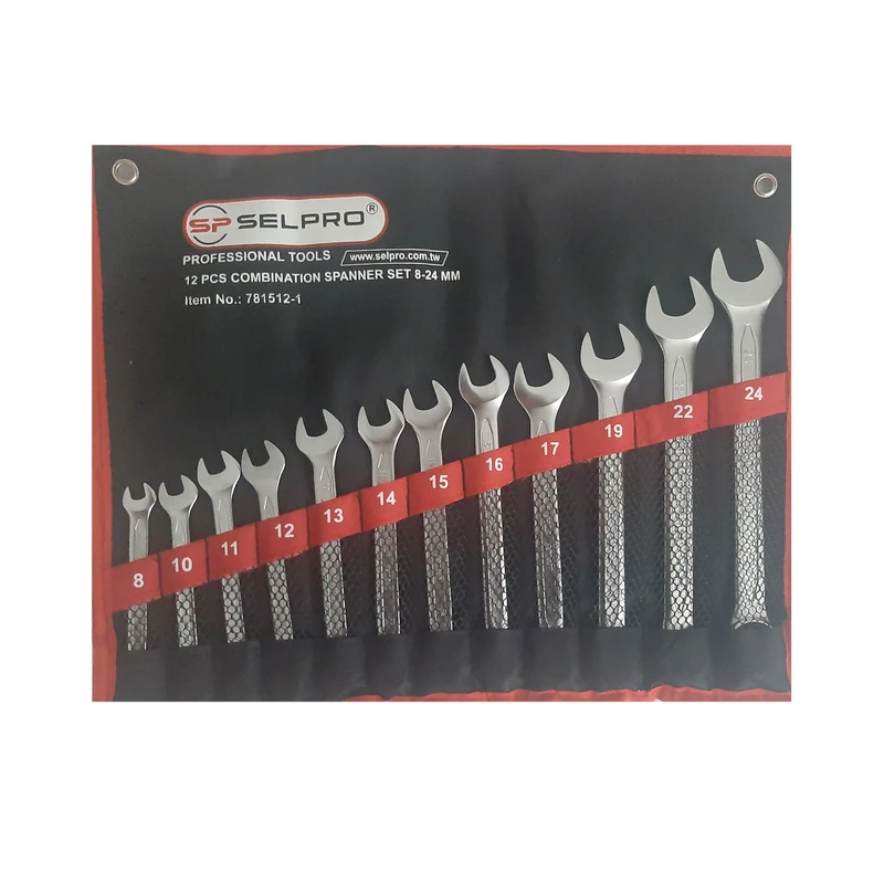 مجموعه آچار یکسر تخت یکسر رینگ سلپرو ساخت کشور تایوان می باشد و از کیفیت بی نظیری برخوردار است. این مجموعه حاوی 12 عدد آچار یک سر رینگی و یک سر تخت در سایزهای 8 تا 24 است. برای ساخت آچارهای این محصول از بهترین آلیاژ کروم وانادیوم استفاده شده است تا مقاومت بالایی در برابر ضربه و فشار داشته باشد. این مجموعه آچار درون یک کیف برزنتی قرار گرفته است.