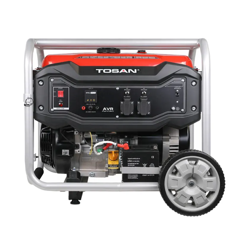 ژنراتور بنزینی 5500 وات الکتریکی مدل 1155GW توسن، هم به استارت الکتریکی، هم به استارت هندلی مجهز است و موتور بسیار قدرتمندی با ظرفیت 420 سیسی دارد که با توان 8 اسب بخار کار میکند. این دستگاه با ماکزیمم بار خود تا 7/5 ساعت بهطور مداوم کار میکند. البته اگر میزان بار روی آن کمتر باشد این مدتزمان افزایش مییابد؛ برای مثال با 50درصد بار تا 15 ساعت پیوسته کار خواهد کرد. موتور برق 1155GW توسن سه پورت خروجی دارد؛ دو پورت آن از نوع AC با 230 ولت و 16 آمپر و یک پورت دیگر آن از نوع DC با 12 ولت و 3/8 آمپر هستند. با وجود نمایشگر VFT میتوانید در لحظه وضعیت ولتاژ، فرکانس، کارکرد و مدتزمان استفاده از ژنراتور را چک کنید و شرایط را تحت کنترل داشته باشید. چرا که مجموع توان راهاندازی تجهیزاتی که به ژنراتور متصل میکنید نباید بیش از توان خروجی آن باشد و لود بار اضافی بر دستگاه به آن آسیب میزند. این ژنراتور 5500 واتی توسن، سیستم کنترل الکتریکی AVR دارد که وظیفۀ آن کنترل و مدیریت جریان خروجی دستگاه است و نوسانات آن را کاهش میدهد؛ به این ترتیب جریانی پایدار و ثابت خواهید داشت و دستگاههای متصل به آن آسیب نمیبینند. برای ایمنی بیشتر برای پورتهای خروجی 220 ولت موتور برق، فیوز ایمنی هم تعبیه شده است. این دستگاه دارای دسته و چرخ حملونقل است که جابهجایی آن به محل مورد نظرتان راحت باشد. سیمپیچ مسی موتور، سوییچ و فیوز ایمنی و قطعکن محافظ از آسیبدیدن دستگاه جلوگیری میکنند و طول عمر آن را افزایش میدهند. علاوه بر این قابلیتها نشانگر هشدار کمبود روغن هم روی دستگاه قرار گرفته است و قطعکن برق آن وقتی میزان روغن کمتر از حد استاندارد خود شد ژنراتور را خاموش میکند. در دفترچه راهنمای موتور برق بنزینی 5500 وات الکتریکی مدل 1155GW توسن بهطور کامل دربارۀ نحوۀ استفاده و نگهداری از دستگاه آمده است. در ادامه با جزئیات بیشتری از آن آشنا خواهید شد.